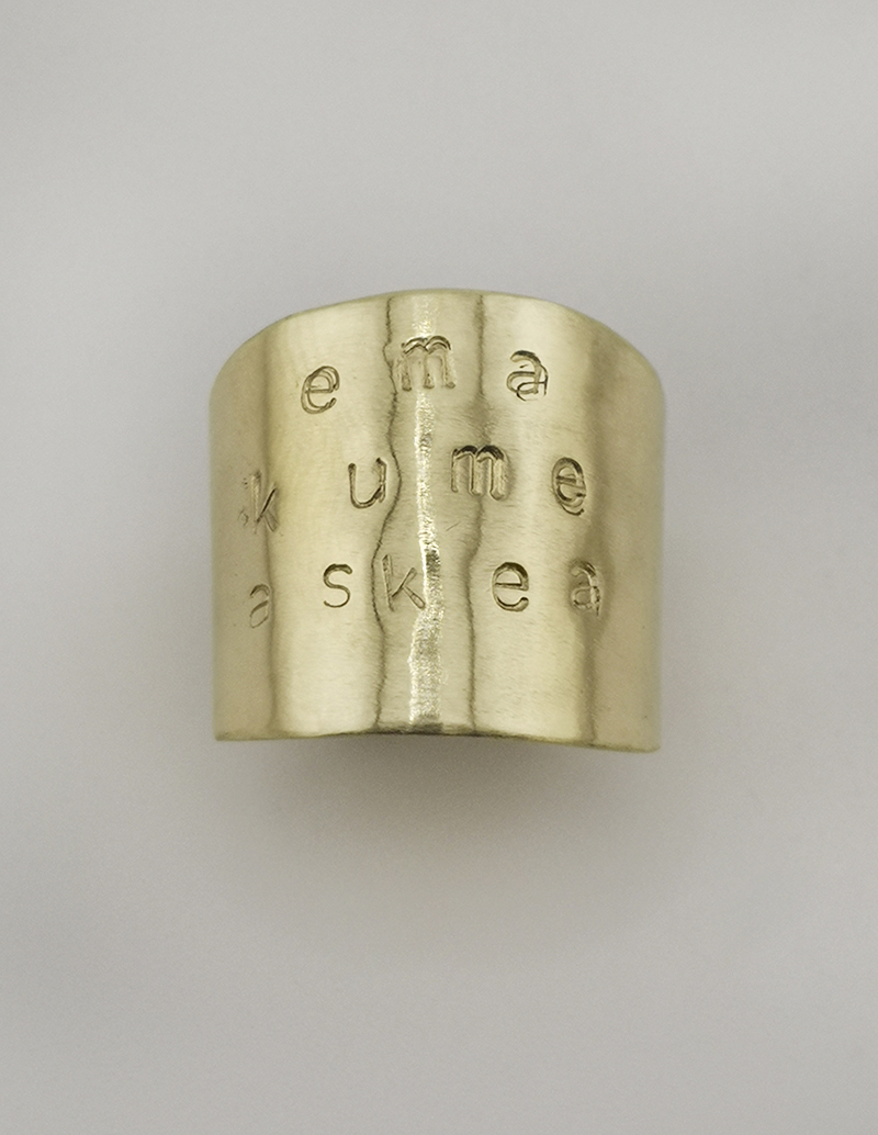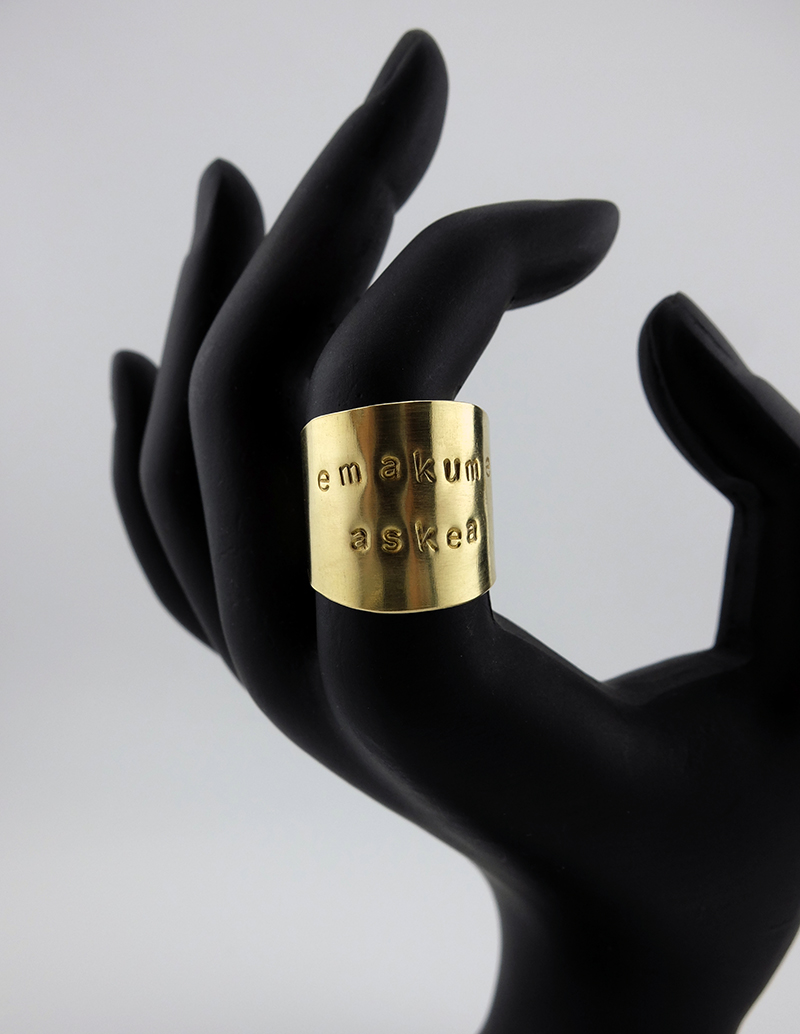 Bague réglable en laiton, message Emakume askea (Femme libre en basque).